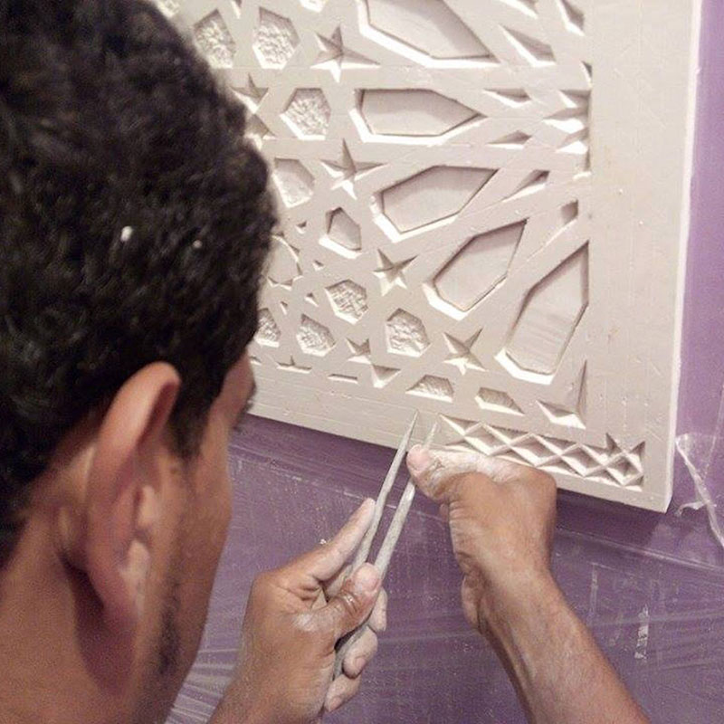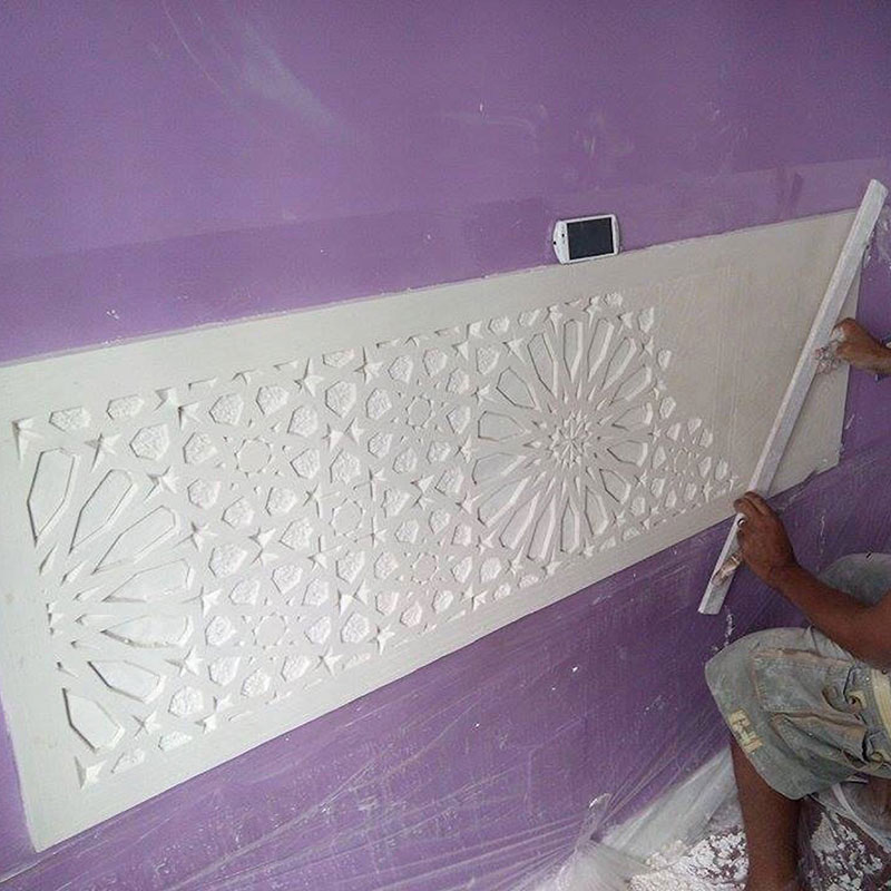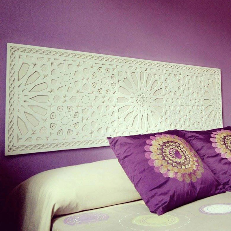 Mi especialidad es la decoración arabesca o Arte Nazarí, escayola labrada a mano que puede ser una opción preciosa para detalles en la casa, como cabeceros de cama, espejos, o cornisas interiores o exteriores. Cualquier trabajo tanto funcional como decorativo.