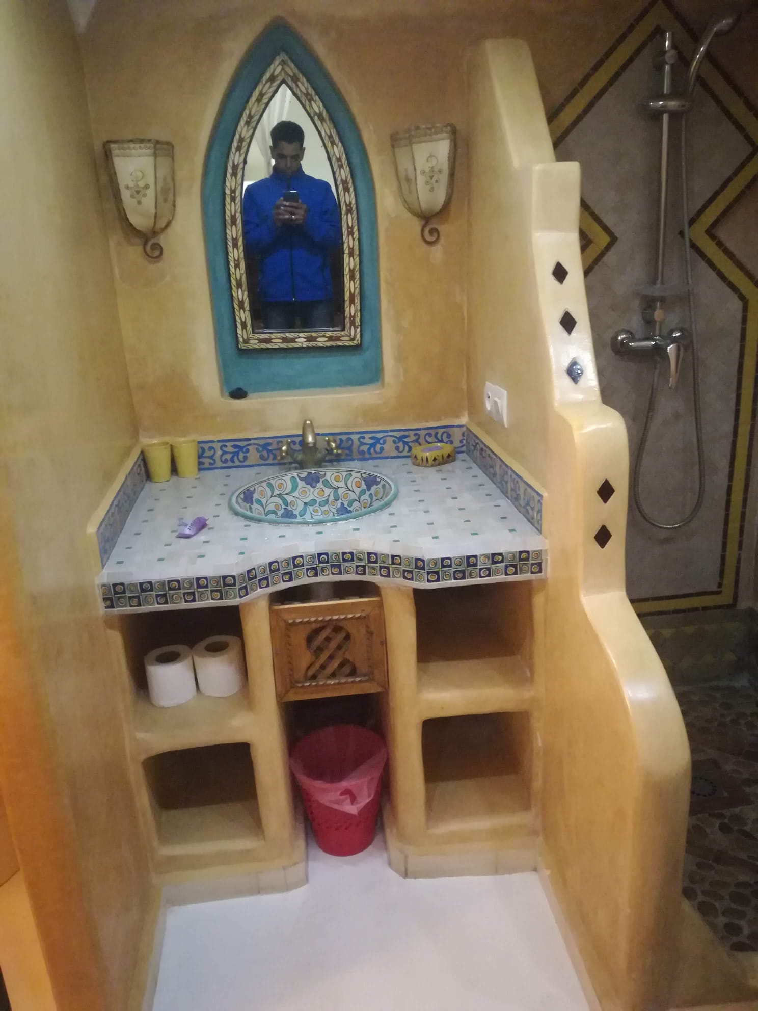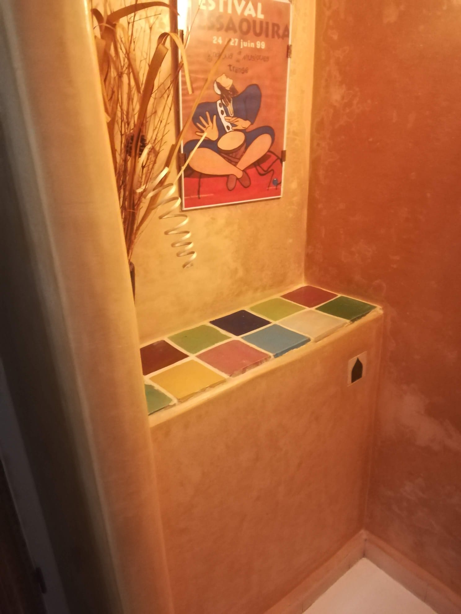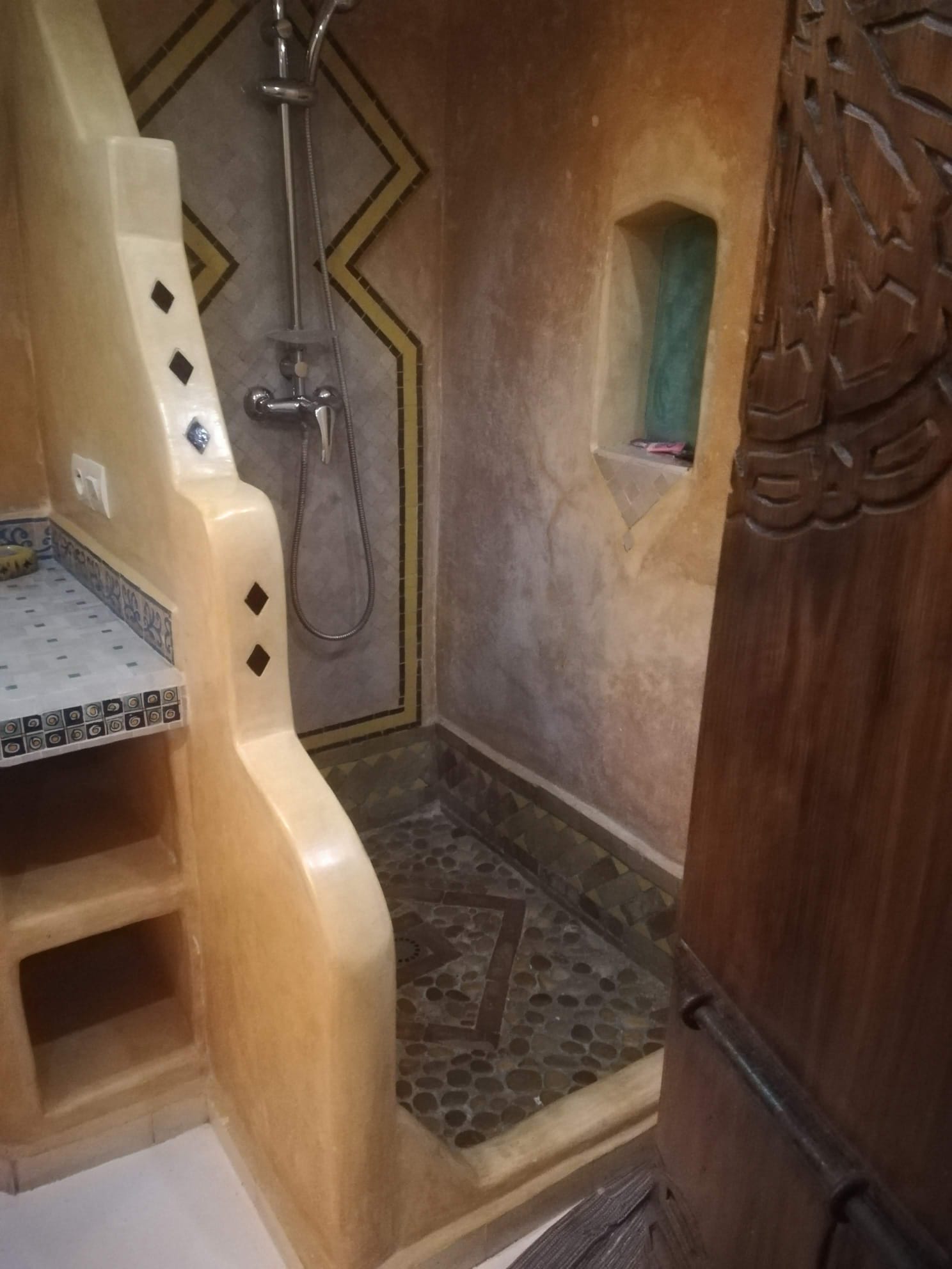 Esta técnica es un acabado muy completo que enamora a través del tacto y de la vista. Si ves una superficie de tadelkt no puedes resistirte a tocarla, es realmente increíble. En un inicio se utilizó para revestir cisternas que se enterraban y en las que se almacenaba el agua potable. Su gran poder de impermeabilización ha hecho que durante cientos de años sea utilizada en los hammams, posteriormente en cuartos de baño e incluso como recubierta de bañeras, lavabos, suelos y paredes de cualquier parte de la casa tanto interior como exterior. Es un potente impermeable y una solución definitiva para lugares dónde la humedad deteriora otros materiales aparentemente resistentes.